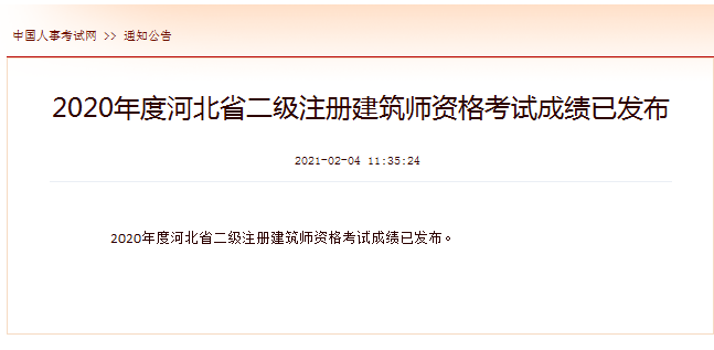 2020年河北二级注册建筑师成绩查询入口:中国人事考试网