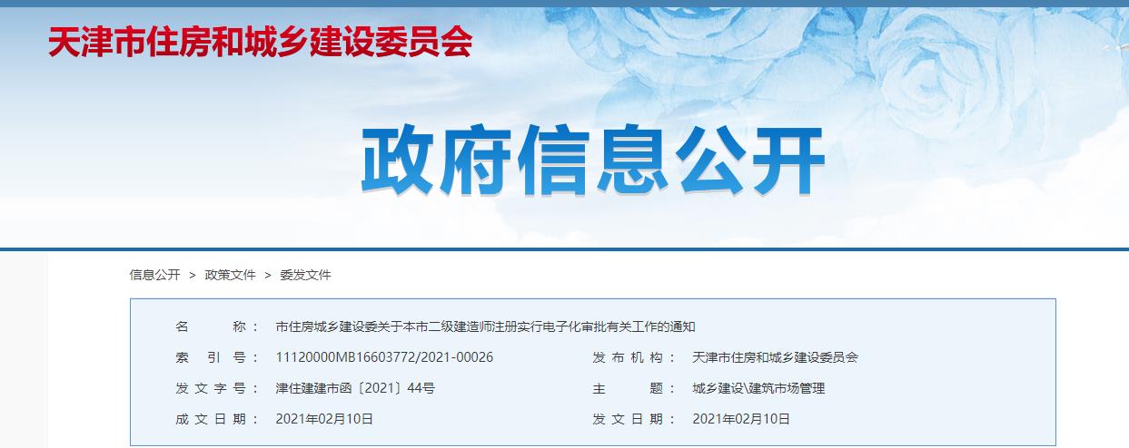 2020年天津二级建造师注册实行电子化审批 不再发放纸质证书,近日,天津住房城乡建设委发布了关于本市二级建造师注册实行电子化审批有关工作的通知,其中指出启用二级建造师电子注册证书,不再发放纸质注册证书及防伪变更贴。以下是建培小编给大家带来的相关整理。
